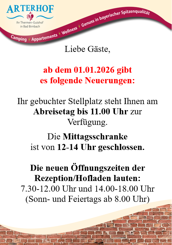 Die neuen Öffnungszeiten der Rezeption/Hofladen lauten: