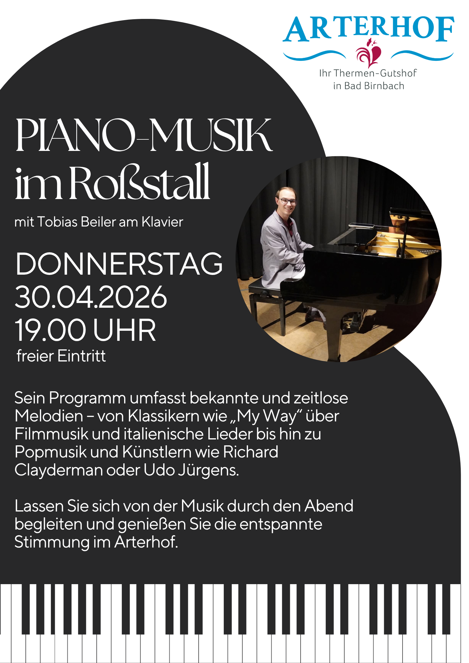 mit Tobias Beiler am Klavier freier Eintritt Sein Programm umfasst bekannte und zeitlose Melodien - von Klassiker wie "My Way" über Filmmusik und italienische Lieder bis hin zu Popmusik und…
